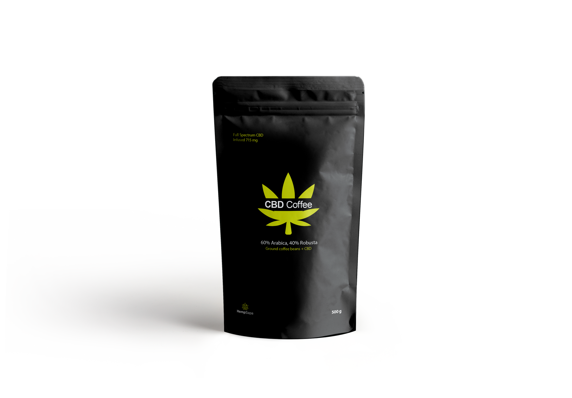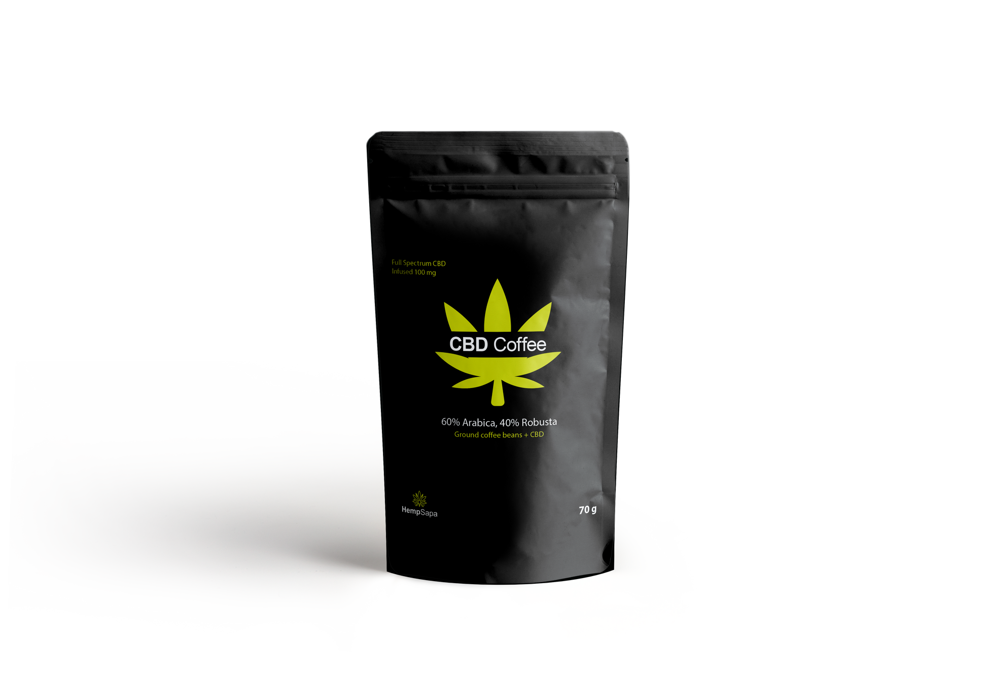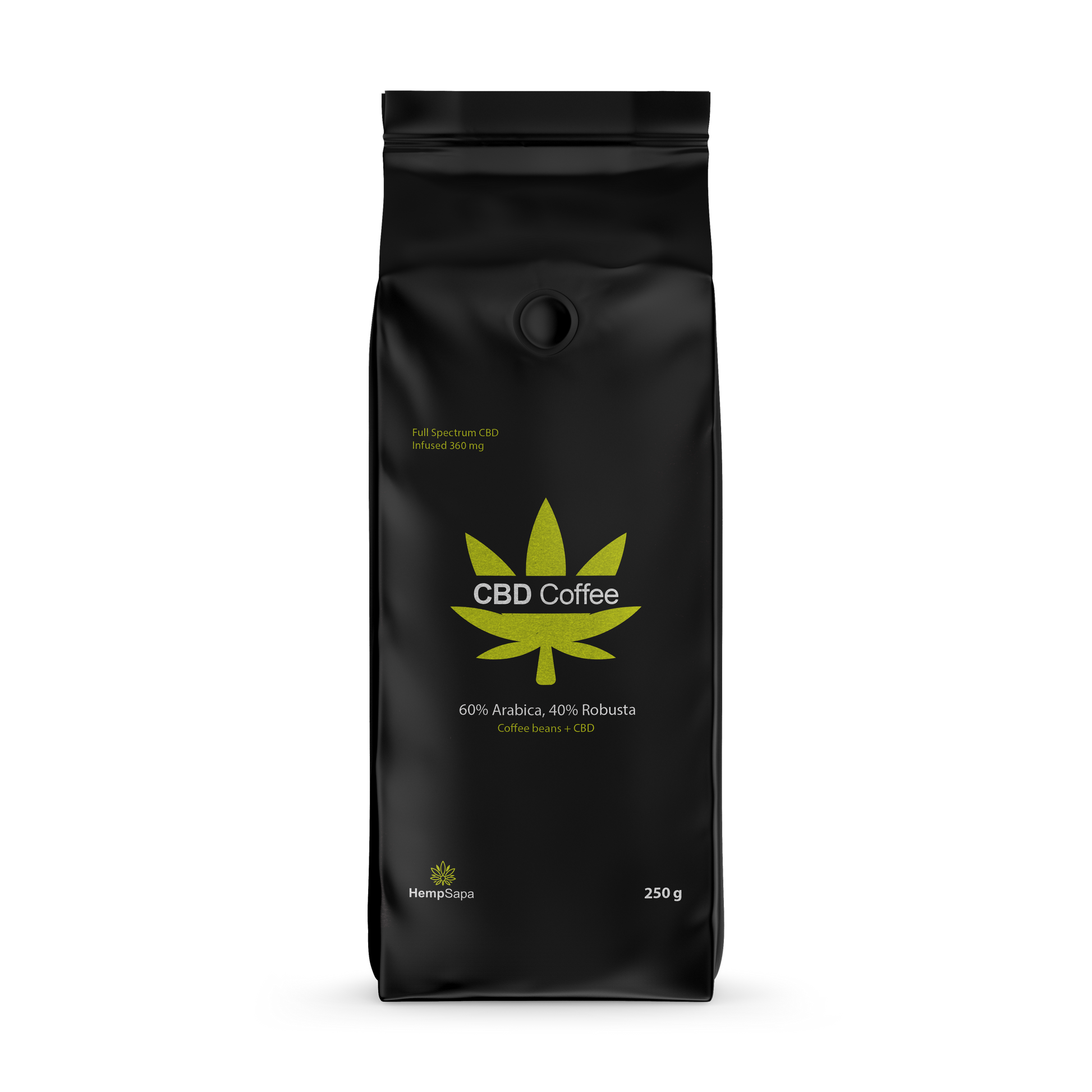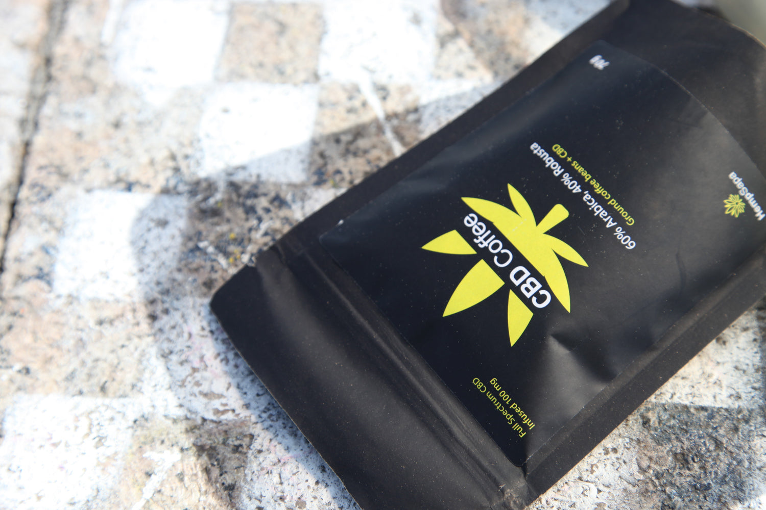 Thành phần: Hạt cà phê xay (60% Arabica, 40% Robusta), CBD chiết xuất toàn phần
